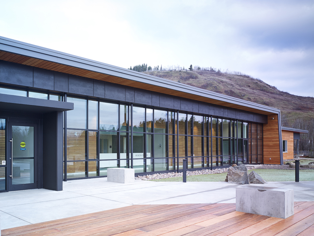 The Gitwangak Health and Community Building is located in the Gitxsan territory along the banks of the Skeena River about 96km northeast of Terrace along Highway 16.