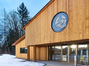 The design respects the site, maximizes the trees and provides a welcoming building for the community.