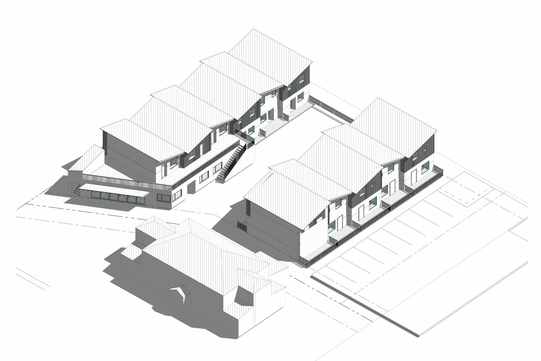 Located in Smithers, BC, the project is sharing the site with the Society’s safe home to provide a housing continuum for women and their children in the same place. The project features a common space, including a dining room, lounge, study area and children’s play area as well as spaces for support staff and visiting professionals.