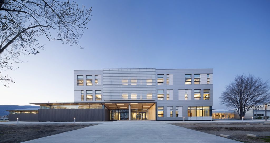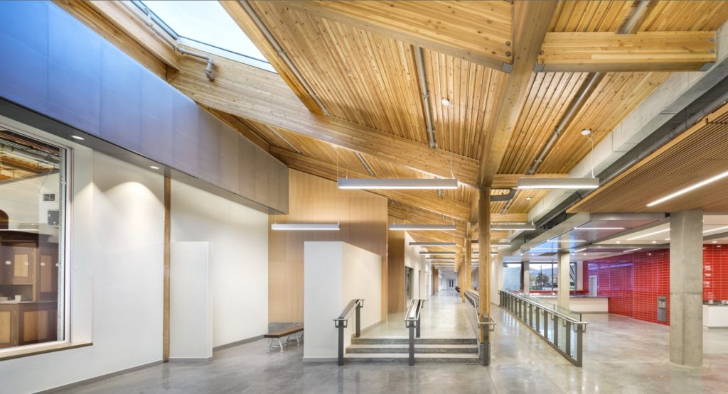 The Okanagan College Trades Renewal and Expansion project comprises two components, the renovation of 4,180 m² of existing trade workshops and the construction of a 5,574 m² addition. The new addition creates a new public face of the college and imbues exemplary sustainable building practices to serve future generations in trades.